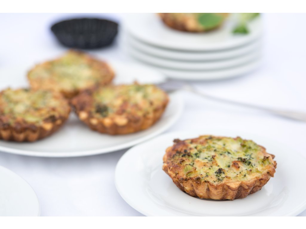 Původem francouzský slaný koláč zvaný quiche (čti "kiš") s náplní z brokolice, nivy, šlehačky a muškátového oříšku. Vhodné na cateringy či svatební hostiny - mini.