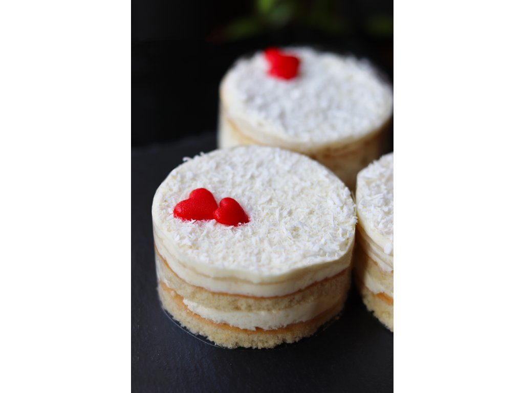 Složení: vejce, marcipán, smetana ke šlehání (smetana, stabilizátor: karagenan), pšeničná mouka, cukr, kokos, mascarpone (smetana, kyselina citrónová), olej, mandle